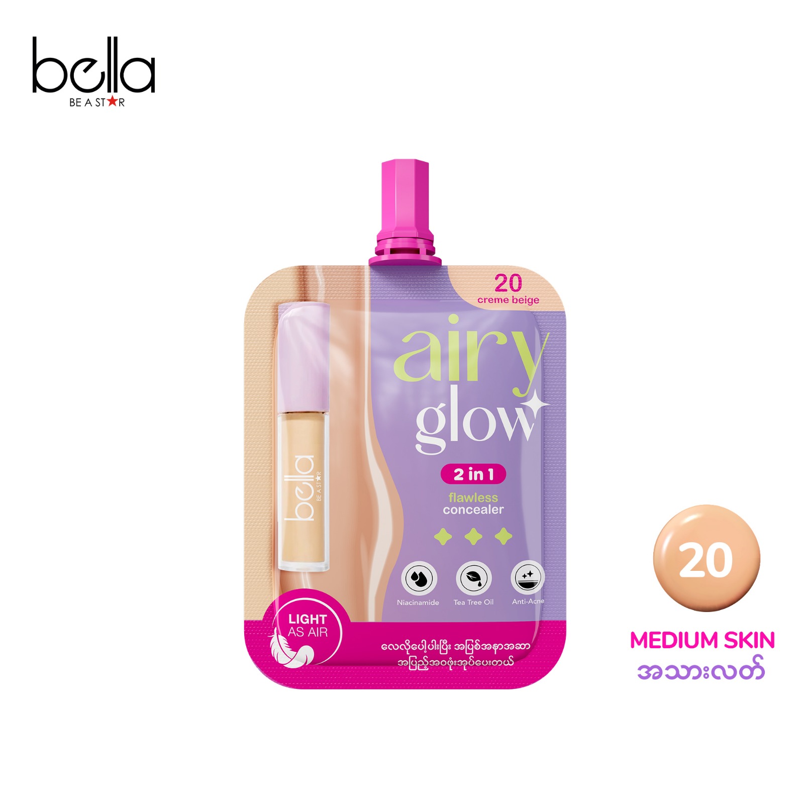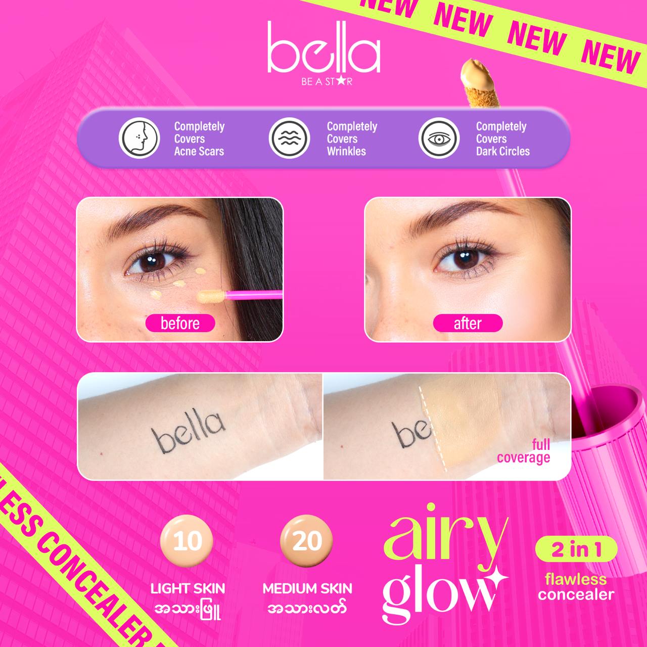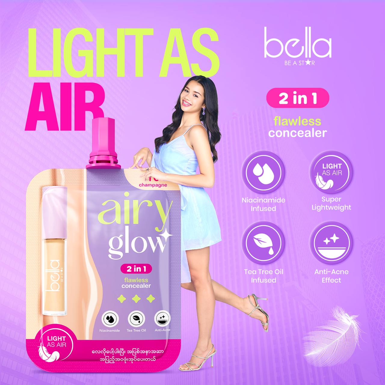 လေလိုပေါ့ပါးပြီး အပြစ်အနာဆာတွေကို အပြည့်အဝ ဖုံးအုပ်ပေးမယ့် Airy Glow Concealer