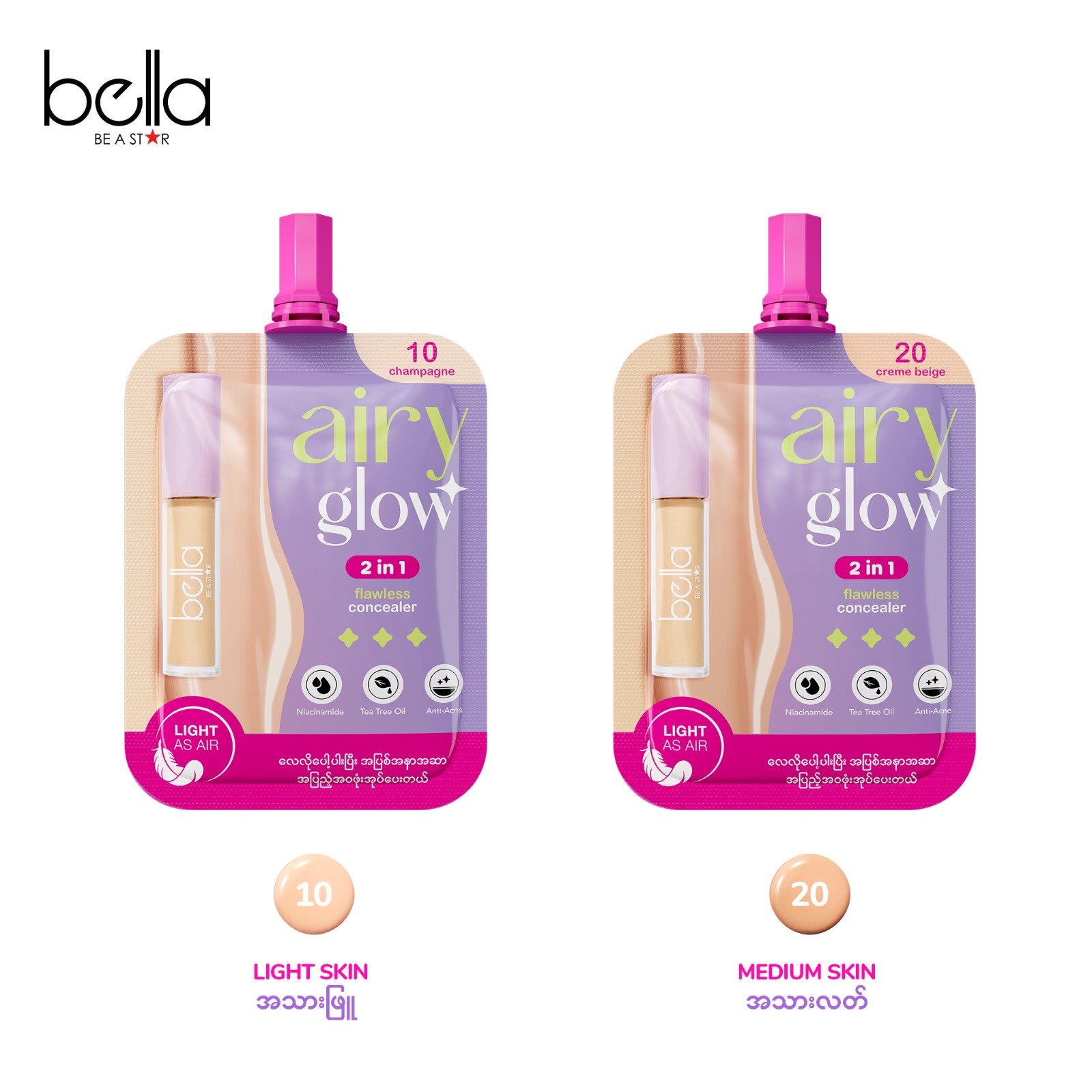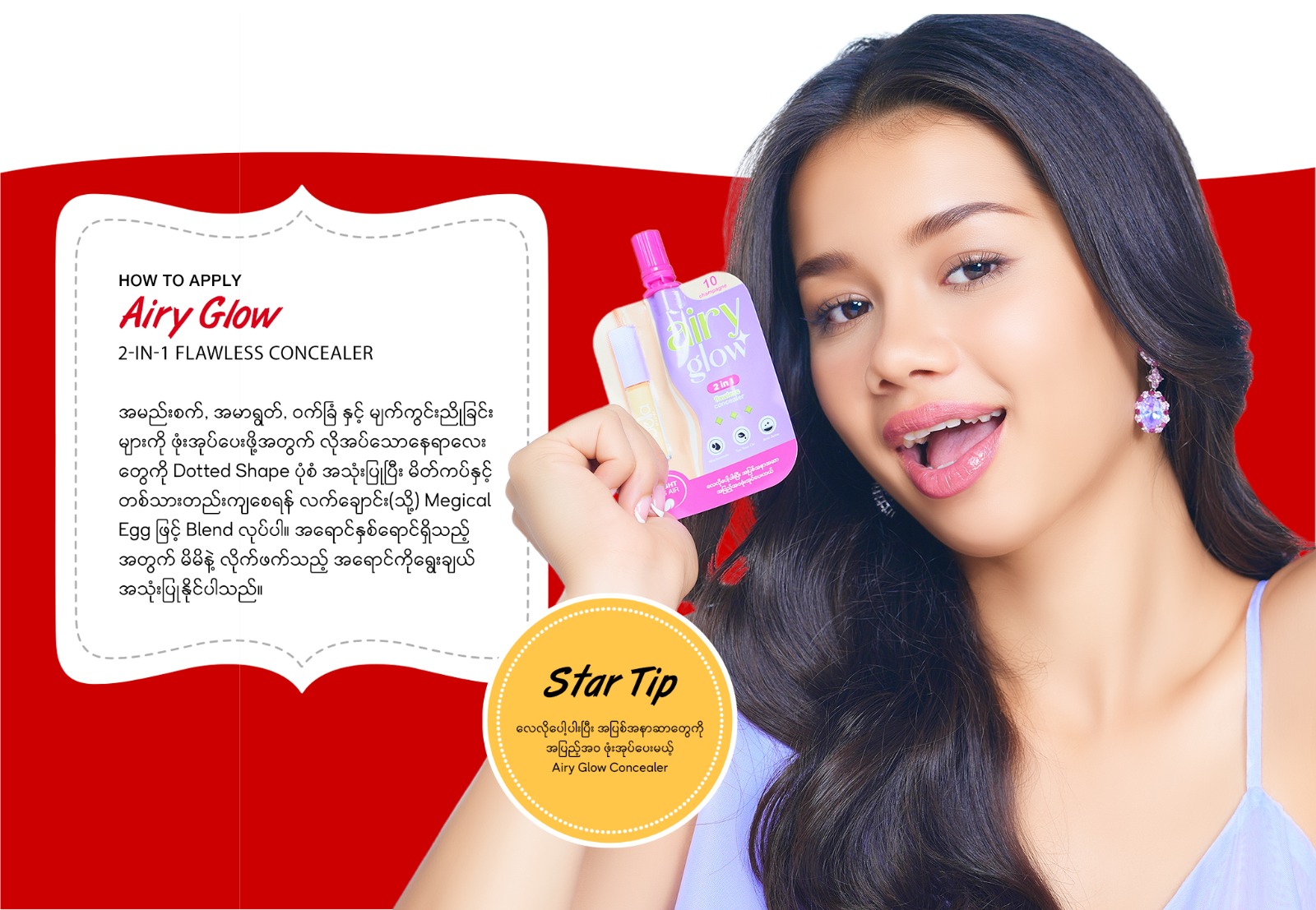 လေလိုပေါ့ပါးပြီး အပြစ်အနာဆာတွေကို အပြည့်အဝ ဖုံးအုပ်ပေးမယ့် Airy Glow Concealer